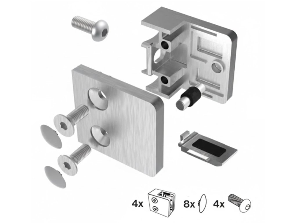 4× držák skla v rozebraném stavu