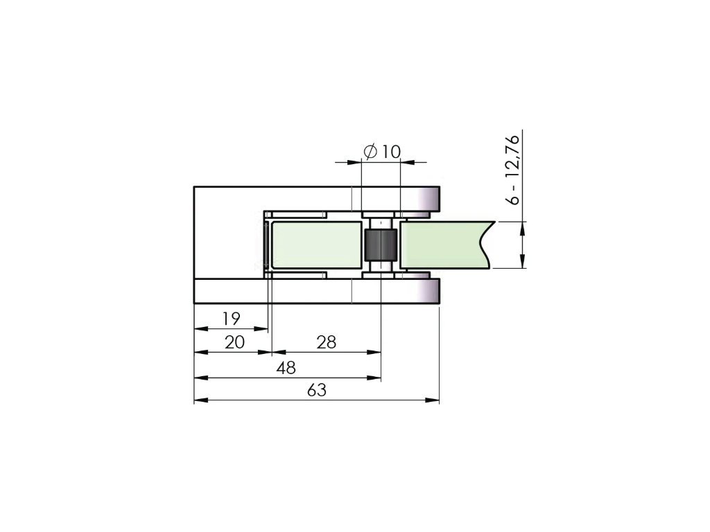 | Určeno pro tolušťku skla: | 6–12.76mm |