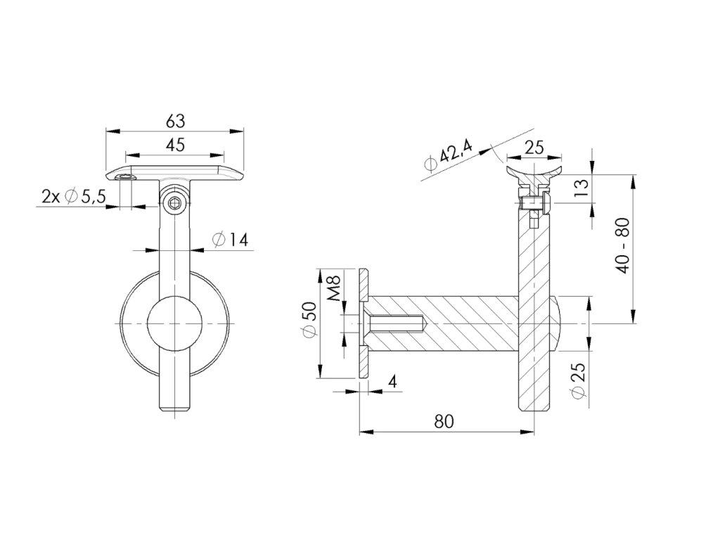nastavitelný držák na zábradlí s pr. 42,4 mm