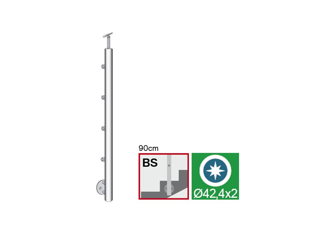 Sloupek na schody, boční kotvení Ø42,4mmx900mm, 4xØ12mm-AISI316
